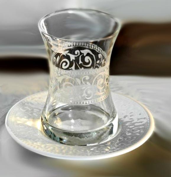 Kütahya Porselen Acelya Teeglas Set, Porzellan Unterteller, 12 teilig
